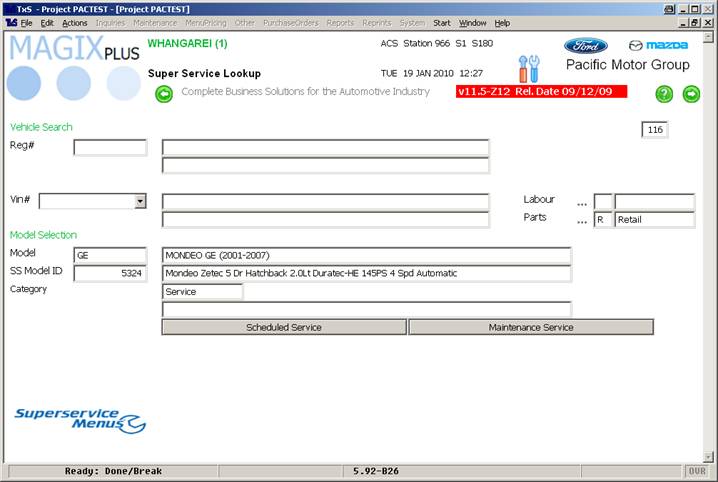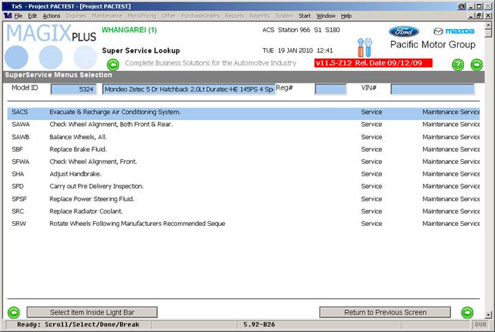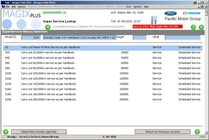 • Clicking on Scheduled Service will give you the selections for vehicle specific services, this is the most common usage of Superservice Menu Pricing and they are accurate to the handbook as below: