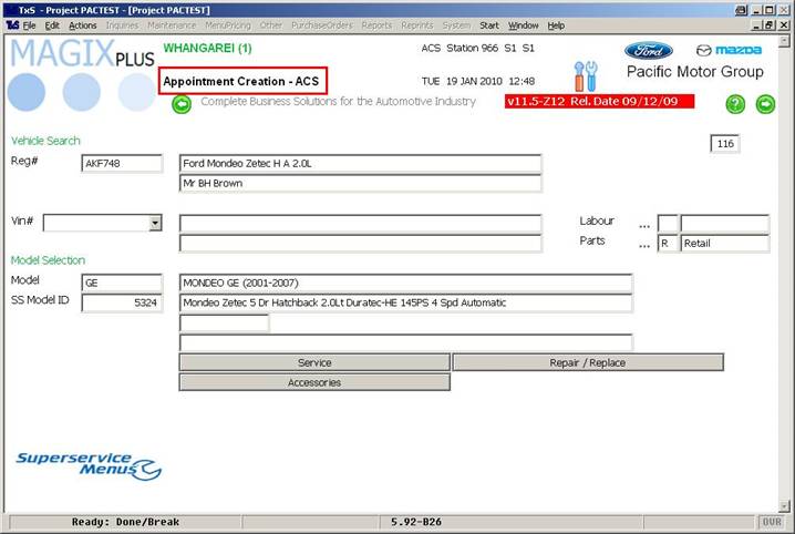 Note: the name of the page being ‘Appointment Creation – ACS’; this designates where you came from to create the appointment, and the name of the operator creating the appointment (being ACS in this example).