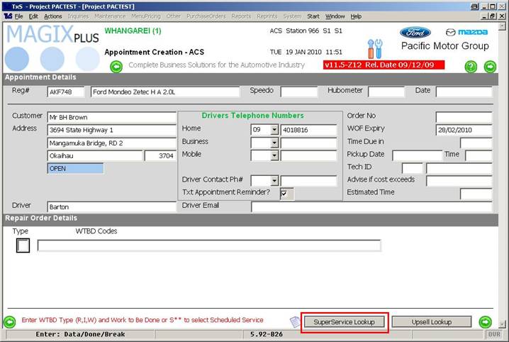 And the third method of accessing Lookup is through the ‘Create Appointment’ button on the main page of the Service interface, as indicated in the image below: