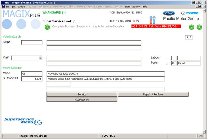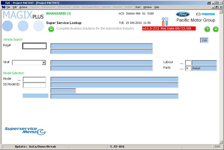 After clicking on ‘Superservice Menus’ you are presented with the lookup screen: