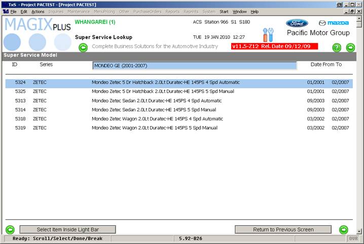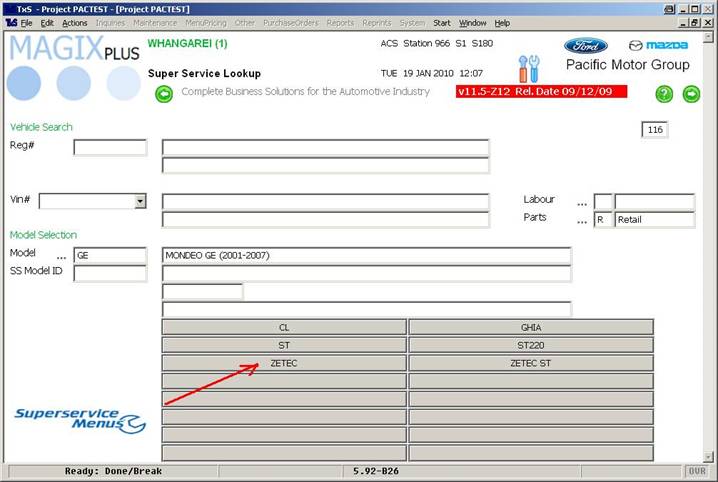 Magix now knows which model you are looking up, although because it hasn’t been assigned a registration number and customer you cannot turn this into an appointment.